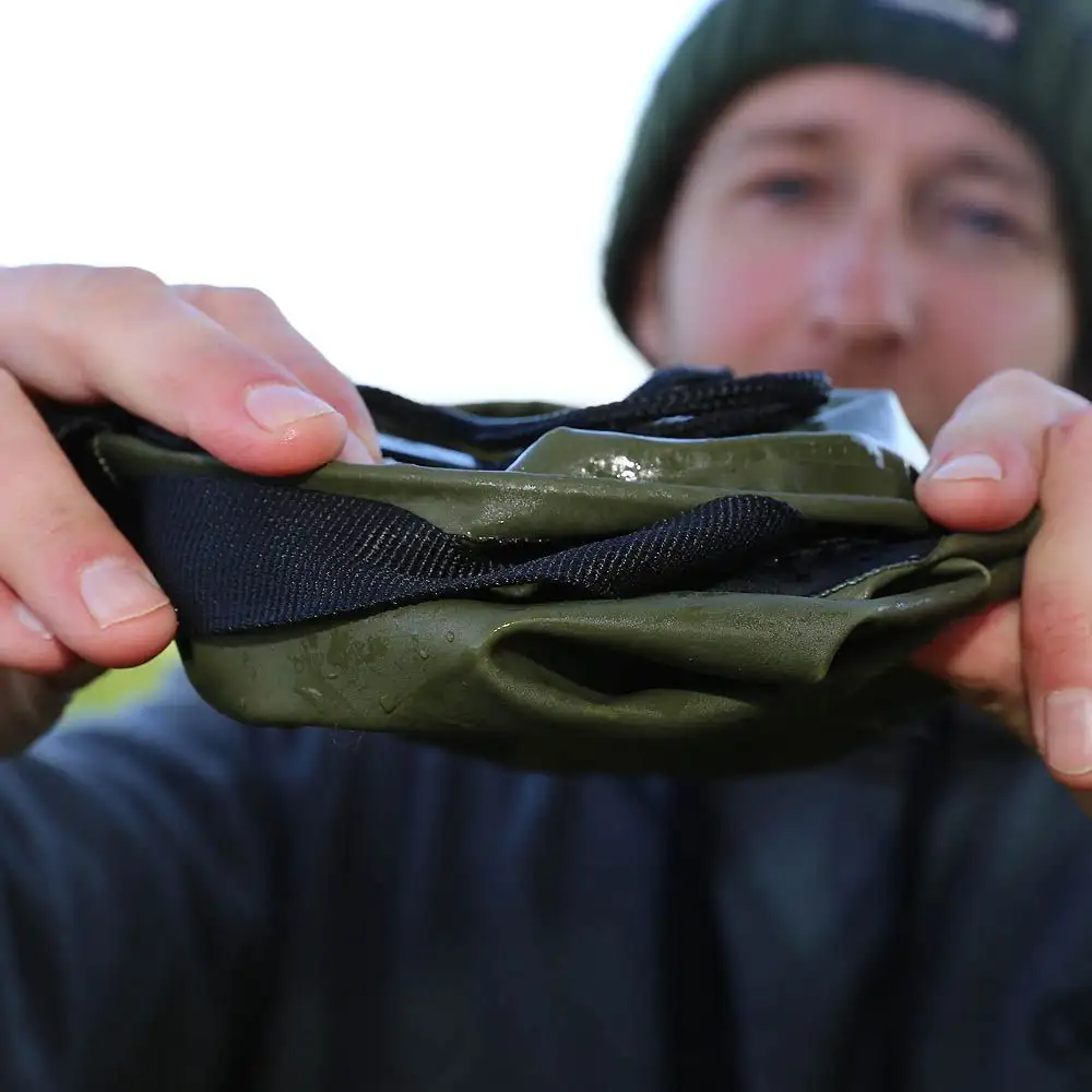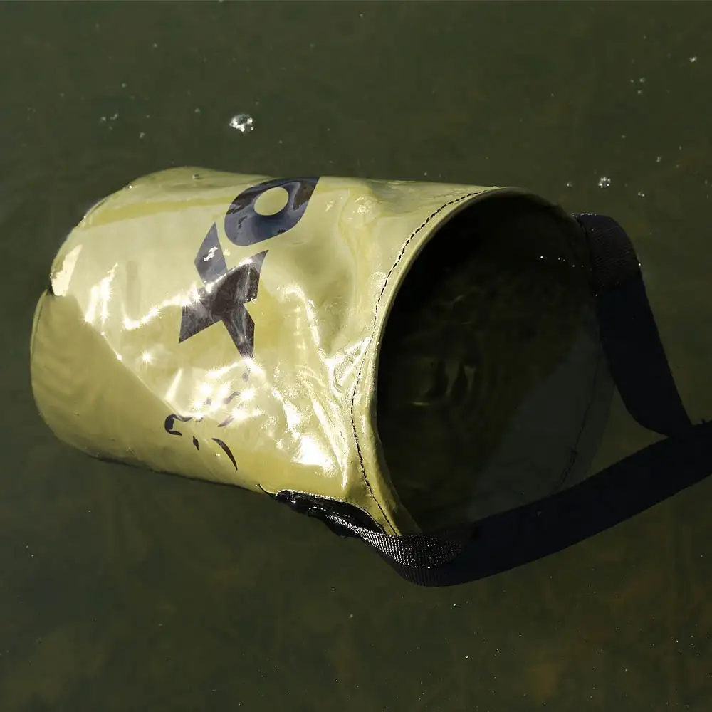 Er hat ein abnehmbare Schnur mit Klammer um den Falteimer ganz einfach an steilen und hohen Ufern zu befüllen, z.B. am Kanalspundwänden etc. Außerdem ist er sehr ideal um den Fisch beim Fotografieren nass zu halten, zum an mischen von Groundbait oder ganz einfach um die Hände zu waschen.