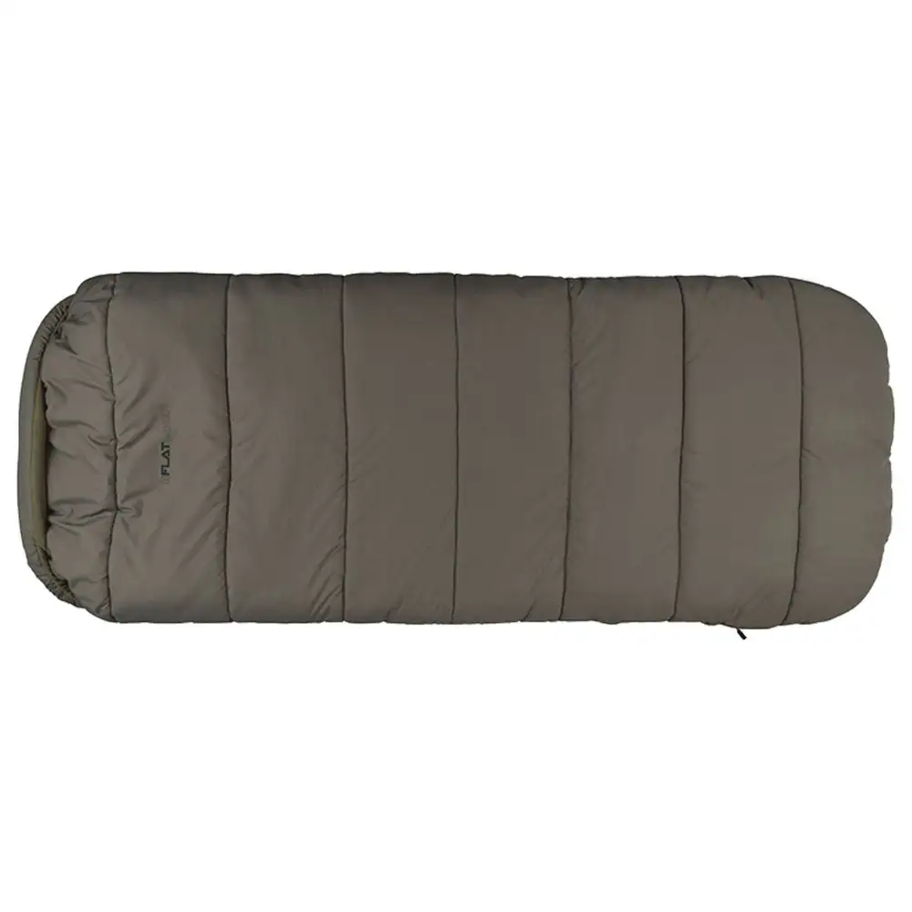 Die Liste der Ausstattungsmerkmale des Fox Flatliner 5 ist lang. Dazu gehören versetzte Nähte, die helfen, die Wärme zu halten, übergroße, strapazierfähige Reißverschlüsse und ein verstellbarer Befestigungsgurt, mit dem der Schlafsack am Bettstuhl verankert werden kann.