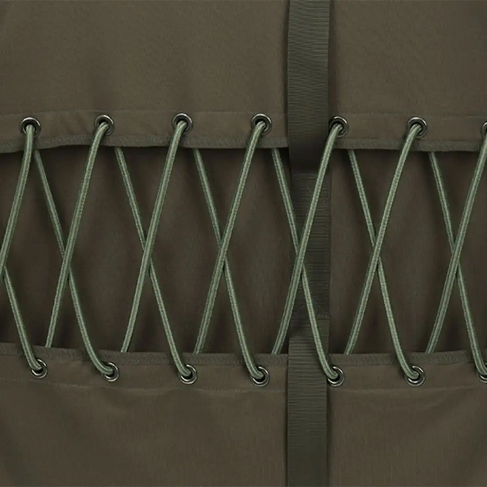 Elastische Überzüge am Kopf- und Fußende sind da um den Schlafsack auf der Liege zu Fixieren, sind aber auch passend für standard Liegen mit Einzelstützfüßen wie z. B. die R2 Camo, EOS2 und die Flatliner 6- & 8-Bein-Liegen.