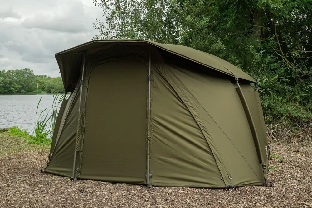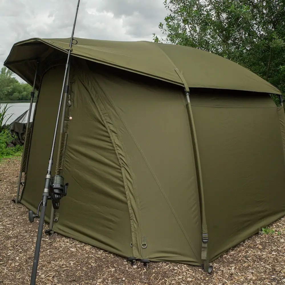 Der Vapour Peak wird montiert, indem man ihn einfach über das Zeltdach wirft und an den Verlängerungsarmen am Bivvy befestigt.